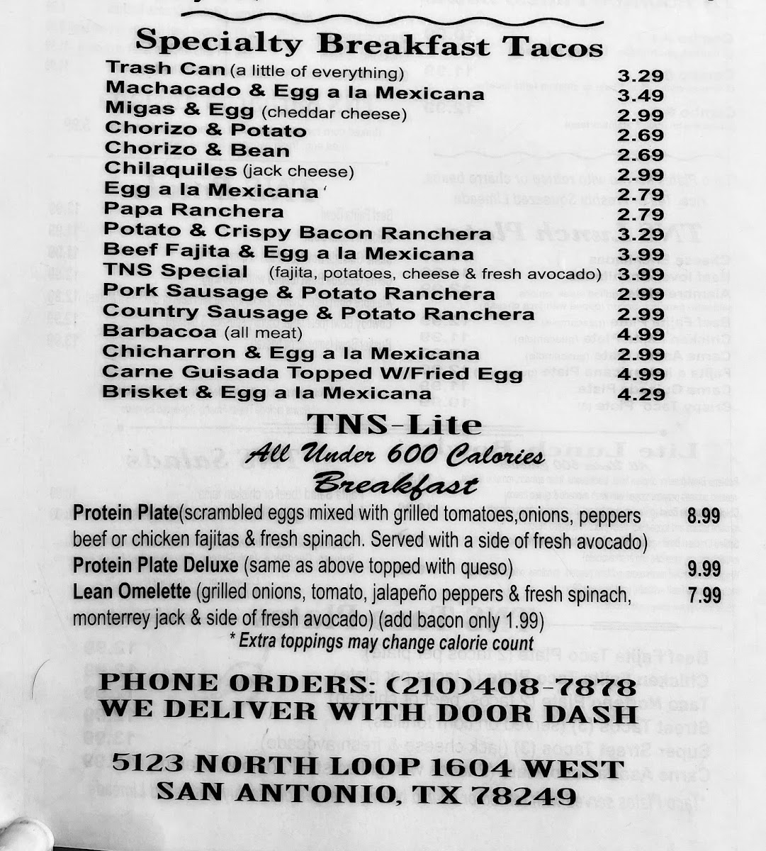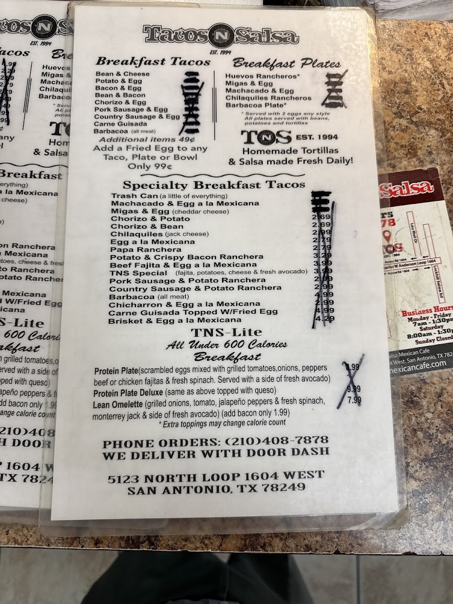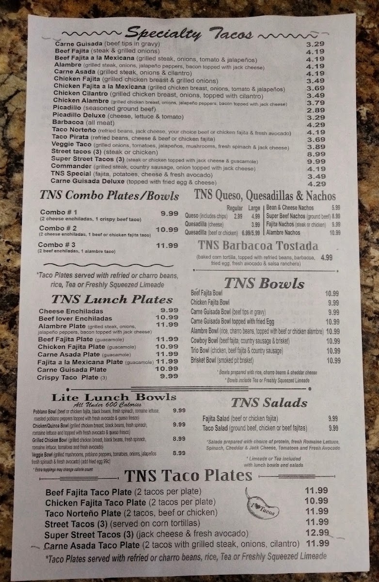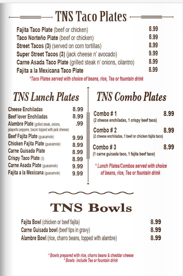 Tacos n’ Salsa Mexican Cafe Menu
